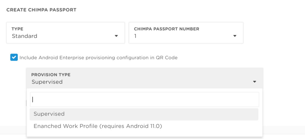 NB: è possibile specificare la tipologia di provision principale: Supervisionata (Completamente gestito) o Profilo di Lavoro Potenziato (Android 11+).